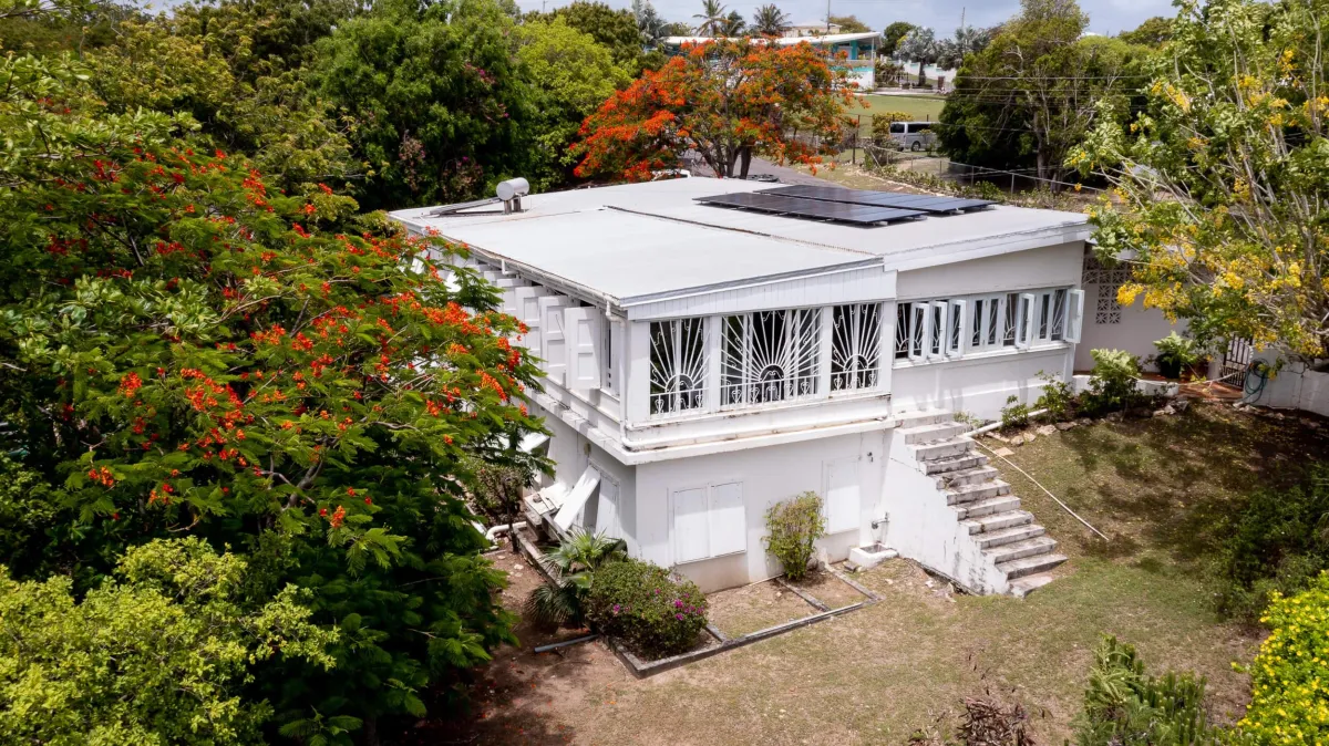 Brimming with character, this 1960s Caribbean home sits on 1.49 acres in the prestigious Crosbies community and enjoys sweeping ocean views along Antigua’s sought-after north coast. With a touch of modern care, the property offers enormous potential—whether as a breezy island retreat or a valuable investment. Crosbies House features four bedrooms and three bathrooms, plus a separate guest cottage. Designed to embrace its views and the island’s constant cooling breezes, the home’s spacious living area opens onto a covered veranda and greenhouse, with an outdoor bar, brick stove, and full outdoor kitchen—perfect for entertaining. At the heart of the home, a generous kitchen provides ample storage and counter space. Upstairs also includes a home office, a fourth bedroom, and a full bathroom, while the lower level hosts three additional bedrooms. The master suite has its own en-suite bathroom, while the other two share a convenient Jack-and-Jill design. Each bedroom offers excellent storage, complemented by two additional storage rooms and a large laundry room with direct yard access. The charming guest cottage is a studio with a versatile open space beneath, currently used as an outdoor gym. The property is fully fenced and gated, with mature landscaping and ample room to add a pool or even build another cottage. Parking includes a covered garage for two cars plus additional street parking. Built of sturdy brick and proven to withstand the elements, the home has been updated with new A/C units in every room and security bars on all windows and doors. A two-year-old propane generator with an automatic switch services both the main house and cottage. Utilities include government water and electricity, a freshwater cistern, and propane cooking gas.