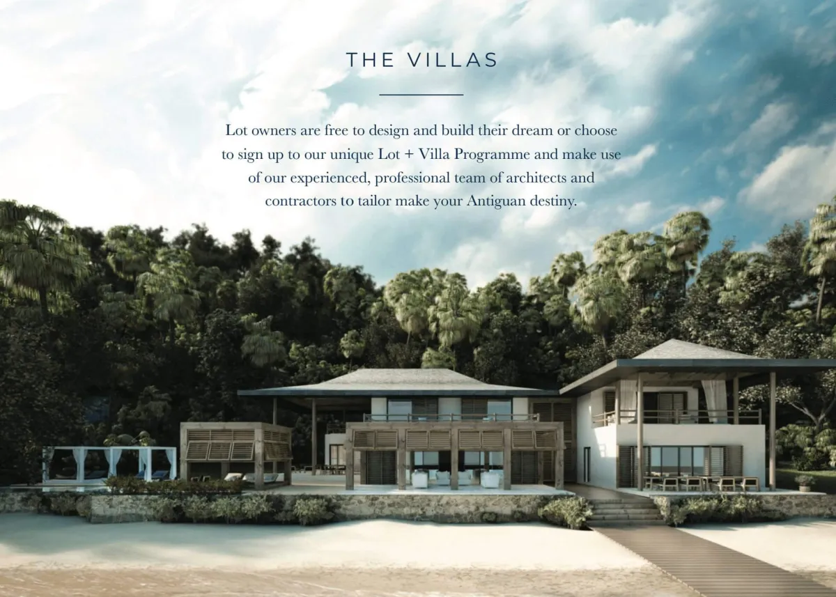 A rare and exciting opportunity to own a property in one of the Caribbean’s most anticipated luxury developments. Land plots on the Pearns Point peninsula extend along Antigua’s western coast – a prime and unspoilt location with spectacular ocean views and unrivalled seclusion, featuring 130 acres with 7 white sand beaches. Developing an overseas luxury home in the tropics is a dream for many but, like anywhere, it can be challenging to manage a project remotely – As part of our Lot + Villa programme we develop your Villa using a choice of designs and a range of optional finishes already created by some of the best international architects along with our significant local experience and the best contractors who have an understanding of international service and quality levels. Pearns Point is a pristine paradise that pays the utmost respect to the island’s native flora and fauna, where natural resources are to be utilized as much as possible: residencies will be built with locally sourced materials wherever possible and designed to blend seamlessly with the landscape; fruit and vegetable crops will be grown in a dedicated nursery and solar energy panels will be set up around the peninsula. The Pearns Point Owners Club include tennis courts, a state of the art fitness centre, a boat jetty and beach bar/restaurant – All for the use of the villa owners. Prices of lots start at $55 USD per sq. ft.